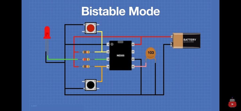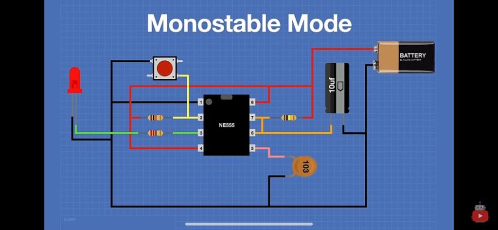 - Astable Mode – functions as a continuous oscillator or pulse generator.