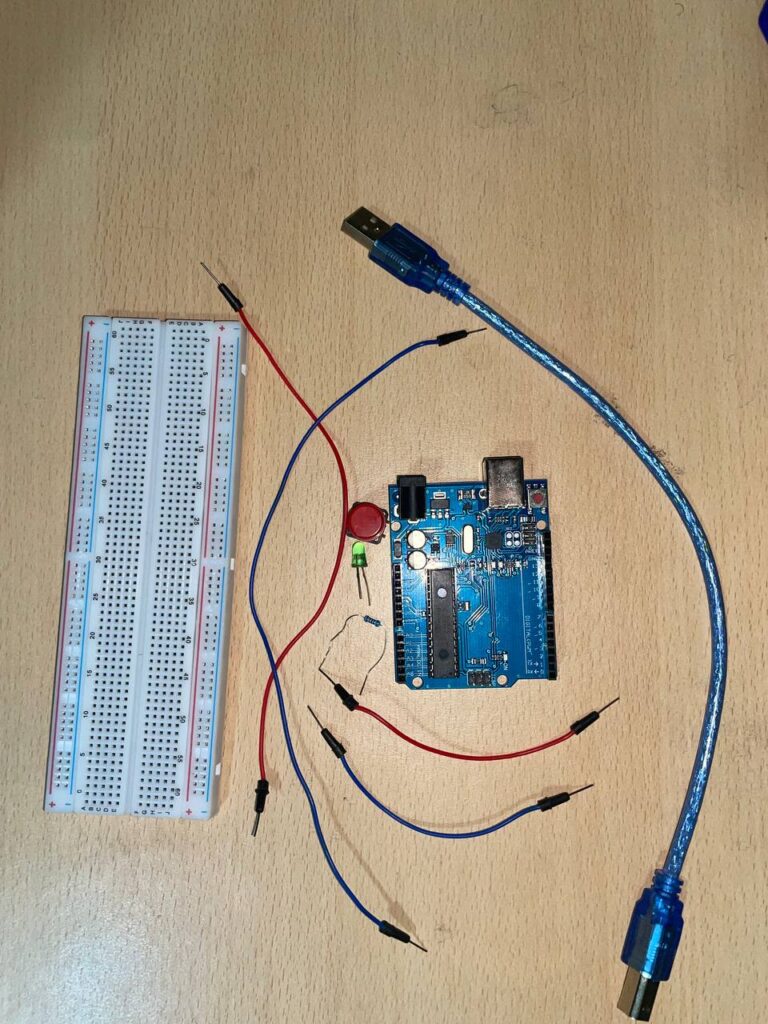 1 resistor (220Ω to 1kΩ is fine)